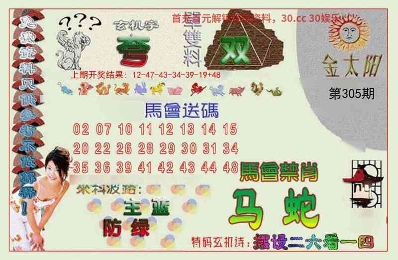 | 305期:三头中特【1头3头4头】开:鼠42准 |